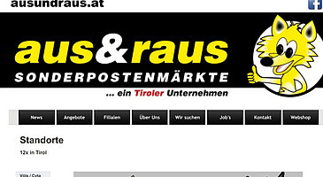 16 Aktionsmärkte auf ca. 10000 m2 Fläche, rund 100 Mitarbeiterinnen und Mitarbeiter, vier Bundesländer – das ist das Tiroler Familienunternehmen aus& raus.
